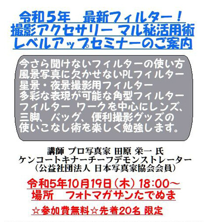 【セミナー開催!】10月19日18:00〜群馬県桐生市「フォトマガザンたでぬま」にて最新フィルターセミナー