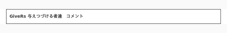 見返りを求めず、与えることに喜びや楽しみを感じられる“Giveからはじまるコミュニティー”が「GiveRs 与えつづける者達」です。メンバーの誰かが困っていたり、探していたりしたら、他のメンバーが情報やサポートを無償で提供します。