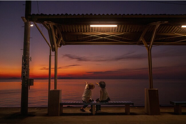 ここは海の見える駅として有名な愛媛県伊予市の下灘駅。過去に何度も入賞している場所ということもあって僕は少し躊躇していたのですが、上位作品を絞り込むたびに少しずつ登りつめた結果、最後は頂点に達したという素晴らしい力を秘めた作品。有名地であることとレタッチを駆使して作り込んだ作品というある種の“弱さ”もあるものの、それを超越する作品自体の魅力が審査員全員の心を捉えました。モデルの皆さんも撮影者も、見る人の気持ちがとてもよく解っていて、両者の気持が通じ合い作品に力を与えています。撮影時刻も気象も良し、空に向かって指を差す演技も少しも嫌みがなく、そこに作者の感性が加わってひとつのハーモニー(調和)を創り上げています。おそらく周囲に他の人もいたのでしょうが、その中で自分だけの世界を描き出した作者の強運と実力に大拍手を送りたいと思います。