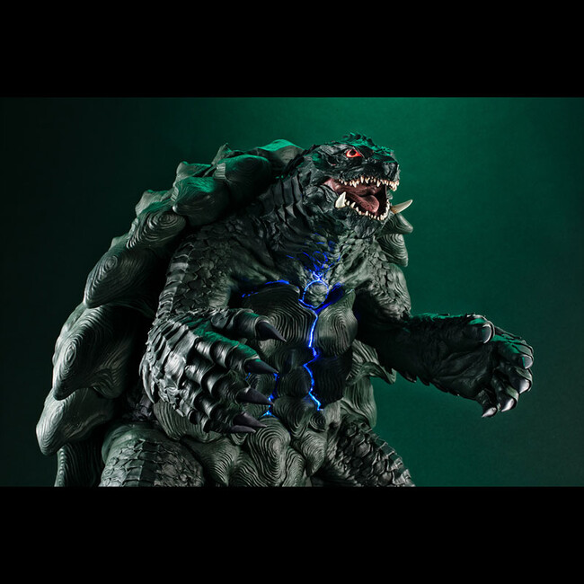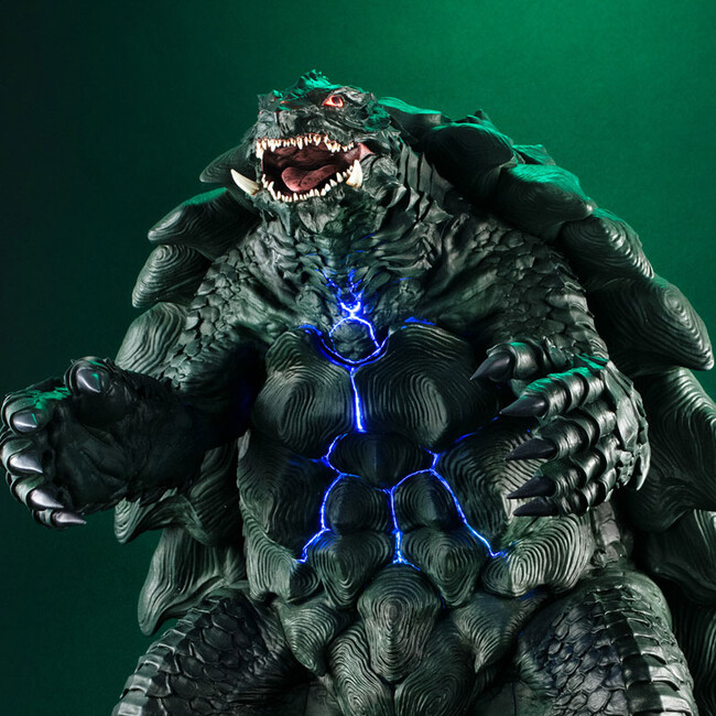 瀬下寛之監督監修のもと、詳細な設定に基づき立体化した表皮や甲羅の造形は勿論、足裏まで施された高密度のディテールは正に圧巻の仕上がり。更に、ライト&サウンドギミックを内蔵。