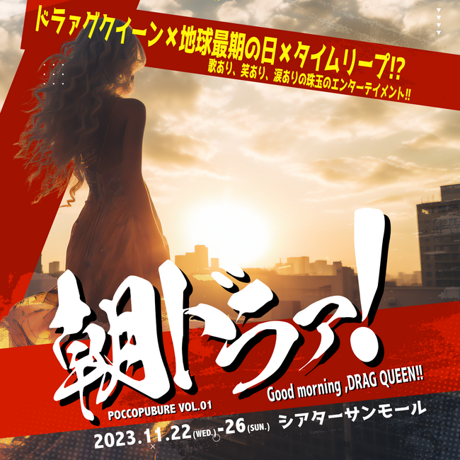 2023年11月22日から26日までシアターサンモールにて「朝ドラァ!-Good morning DRAG QUEEN!!- 」が上演されることが決定し、出演者が発表された。