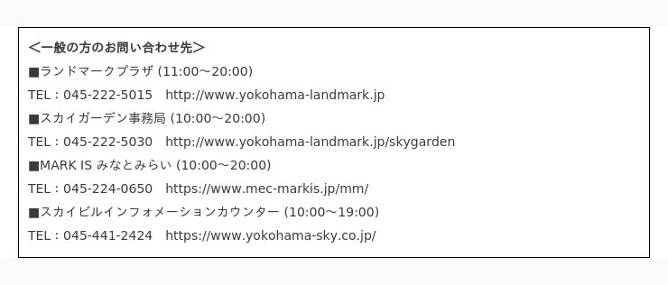 (運営:三菱地所プロパティマネジメント株式会社・株式会社横浜スカイビル)