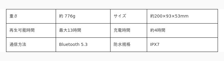 - アウトドアに最適:製品側面には落下などの衝撃に強い合成樹脂素材を採用し、製品の角は従来製品(※ Soundcore 3)に比べて1.5倍の厚みにすることで約2mの高さから落下にも耐えられる耐久性を実現しました(※ Anker調べ)。最大13時間と長時間の音楽再生が可能(※ 音量50%に設定し、BassUp(TM)機能をオフにした場合)で、アウトドアシーンでも安心してお使いいただけます。