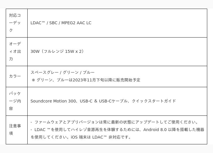 ハイレゾ音源再生が可能なLDAC(TM)を搭載したBluetoothスピーカー「Soundcore Motion 300」を2023年11月1日(水)より販売開始。「アウトドアでも高音質なスピーカーで音楽を楽しみたい」という方に最適な機能性と耐久性を兼ね備えた楽しめる製品です。