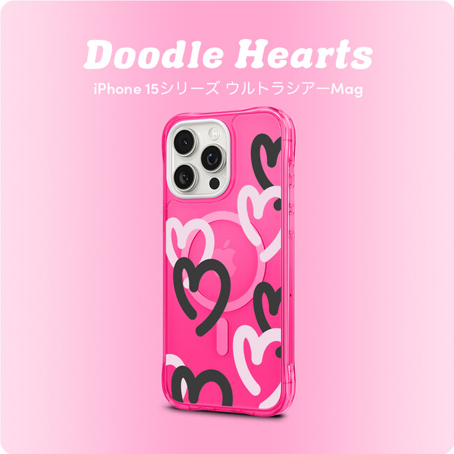 iPhone 15 Pro Ultrasheer Mag Pink Doodle Hearts https://amzn.to/4758Cvg