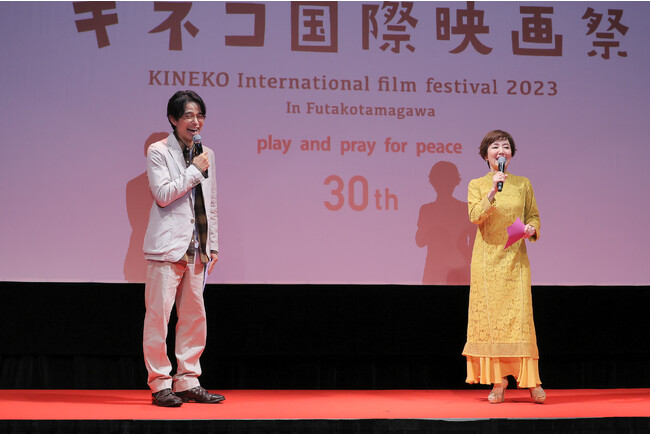 また、セレモニーでは、MCを務めたキネコ国際映画祭スペシャル・サポーターの井ノ原快彦さんとジェネラル・ディレクターの戸田恵子さんが、受賞作を含む2作品の“ライブシネマ”に挑戦しました。その場で上映される映画に生吹き替えを行う、字幕の読めない子どもたちも映画を楽しめるように考えられた本プログラムを、親子で参加の来場者が鑑賞しました。
