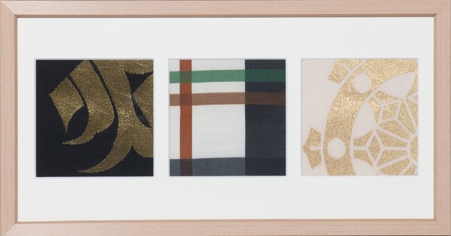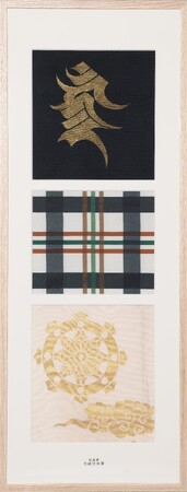 ※実際に使用された衣裳から切り出したため、白粉の痕などが残っている場合があります。また、梵字や紋様がなるべく切れないように配置しておりますが、まったく同じものを制作することができません。お届けする作品が写真のものと異なることを、あらかじめご了解ください。