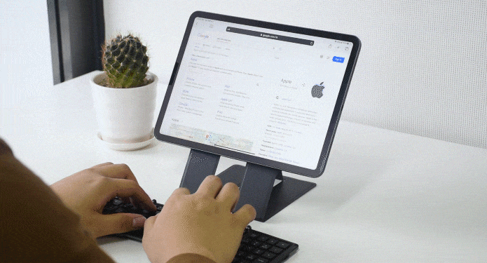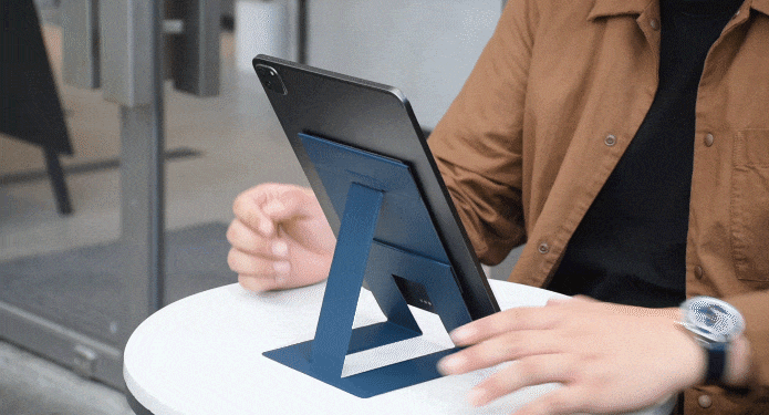 「SINEX P」はタブレット型端末を4つの異なる角度で置くことができる折り畳み式のスタンドです。