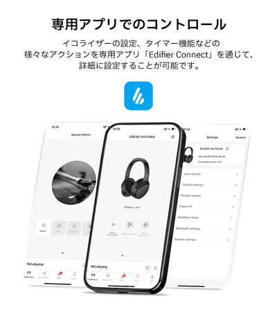 「EDIFIER」専用アプリを通じて、ユーザーの好みに合わせた音質の調整が可能。プリセットイコライザ(クラシック/ポップ/クラシカル/ロック)から選べるので、気分やシチュエーションに応じて最適な音楽体験を実現します。