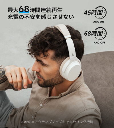 業界トップクラスの最大68時間の連続再生を実現。長時間の外出や旅行中も、音楽を止めることなく、心地よく楽しむことができます。