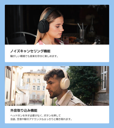 通勤、オフィス、旅行などのシーンで、外部の雑音を効果的にシャットアウトするアクティブノイズキャンセリング機能と外音取り込み機能を搭載しているため、ヘッドホンを外すことなく、会話や駅のアナウンスもはっきりと聞き取ることができます。