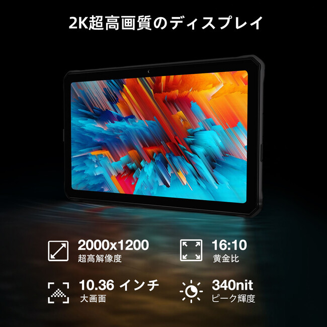 DOOGEE R10 防水タブレッは高解像度の2Kスクリーンを搭載し、細部まで繊細でリアルな画像を表示します。 映画、ゲーム、写真などのマルチメディアコンテンツで、没入感のある体験を楽しむことができます。 DOOGEE R10はTUV認証を受けています。当社は、電子機器の長時間使用が目に与える潜在的な影響を理解しており、可能な限り最高の保護を提供することをお約束します。 DOOGEEの製品は、ブルーライト、グレア、目の保護モードについて専門的にテスト・検証されており、目の健康と快適さを保証します。