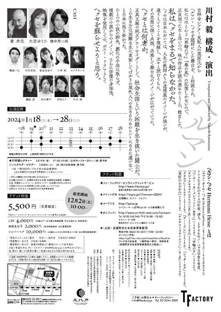 主演 麿赤兒×演出 川村毅で創り上げるヘルマン・ヘッセの世界 大空ゆうひ・横井翔二郎ら出演決定!12月2日カンフェティでチケット前売開始