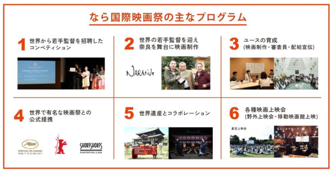 なら国際映画祭では、美しい文化の創造を奈良から世界に発信すべく様々なプログラムを年間通じて行っています。なら国際映画祭HP:https://nara-iff.jp/