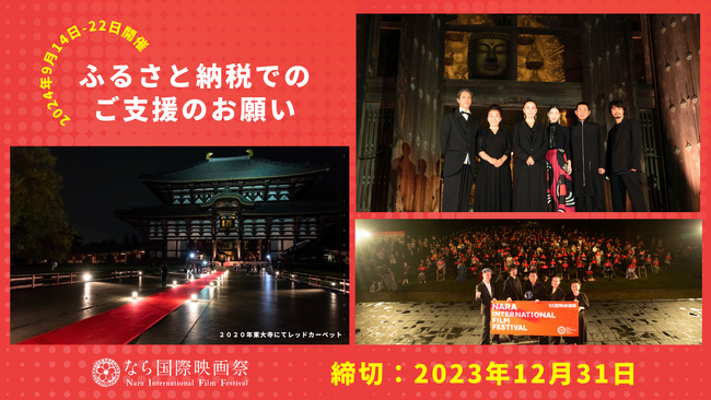 映画祭の企画・運営を行うNPO法人なら国際映画祭(所在地:奈良県奈良市)は、奈良で生まれ育った世界的な映画監督・河瀬直美をエグゼクティブディレクターに2010年よりなら国際映画祭をスタートし、2024年には15周年を迎えます。なら国際映画祭では、共に未来の映画祭を作ってくださる法人・企業・個人の皆様のご支援を「ふるさと納税」で募集しています。奈良の地から美しい文化の創造を世界へ発信し、芸術の力で地域を活性化する取り組みに、皆さまのご支援をよろしくお願いいたします。ふるさと納税詳細:https://nara-iff.jp/join/join-05/