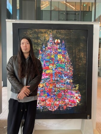 中央区京橋で開催中の現代アート展「Art in Tokyo YNK」への出品作で、全国各都市で撮りためた1000枚以上の看板の写真を重ねたコラージュ2点です=写真。小山さんが数年前にロケでSTビルに来られた際、通路に飾ってあるLUFASを見て「光の演出が出来るのはLUFASの面白さだ」と感じたことから、今回の採用に至りました。