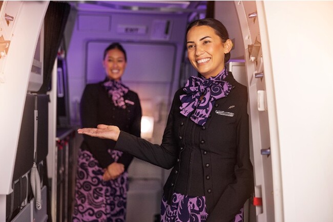ニュージーランド航空はスターアライアンスに加盟し、国際航空会社としてアジア太平洋を含む19ヶ国50都市以上へ運航(2020年1月時点)。日本からニュージーランドへ直行便を運航する唯一の航空会社として毎日1便のデイリー運航をおこなっています。2023年11月30日から2024年3月31日までの期間はさらに週3便増便を予定。乗った瞬間からニュージーランドを感じていただけるニュージーランド流のフレンドリーなおもてなしにご好評をいただいております。