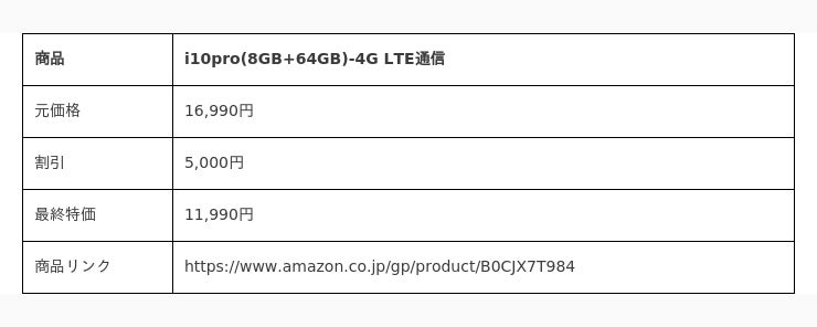 i10pro(8GB+64GB):11,990円