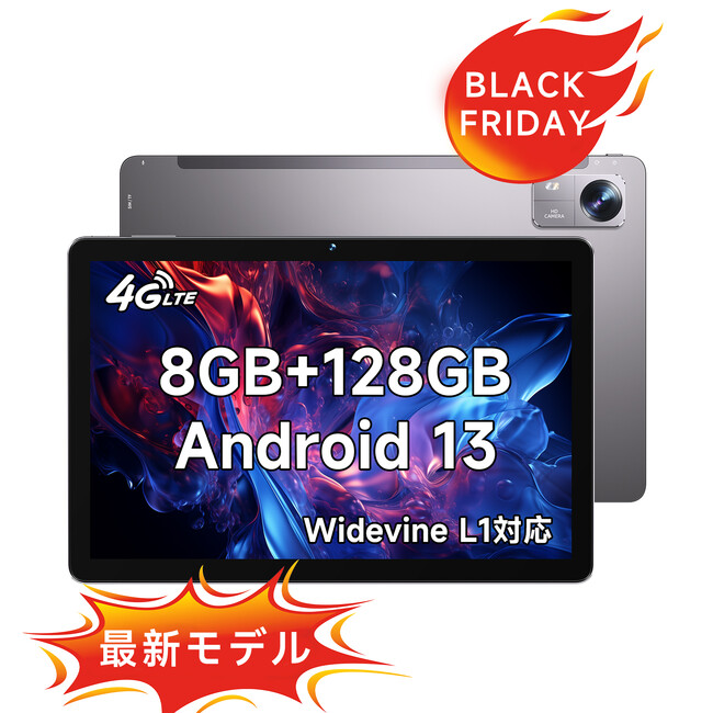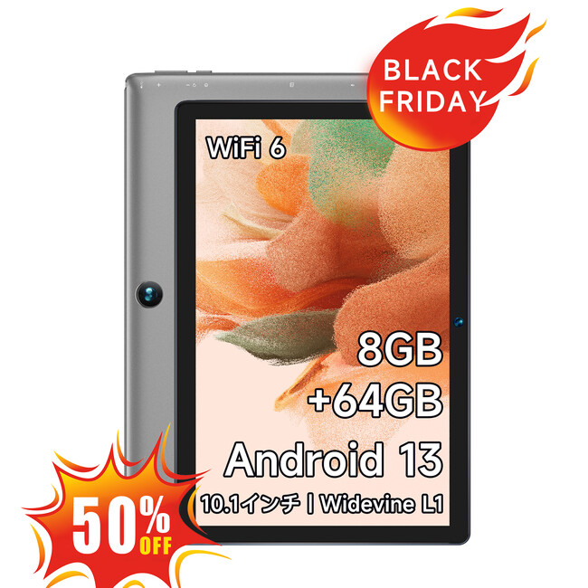 【Amazonブラックフライデー第6弾-史上最低価格9,290円】Android13 タブレット 10インチ、HD IPSディスプレイ、WideVine L1対応、6000mAh、期間限定、最後30台