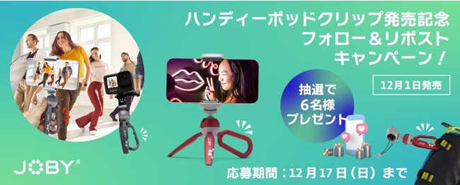 JOBY公式X(旧:Twitter)アカウントをフォローおよびリポストすると抽選で6名様にJOBYの新製品が当たります。
