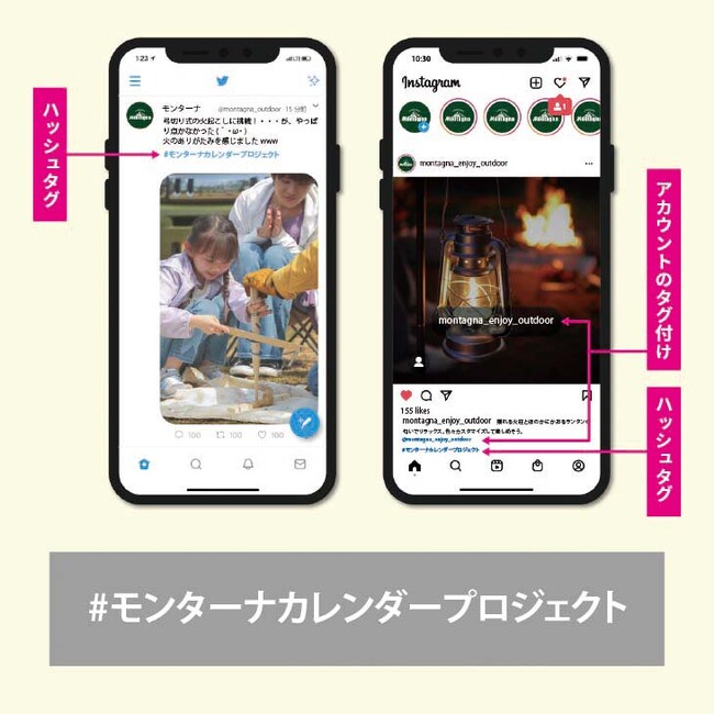 Instagramの場合はアカウント(@montagna_enjoy_outdoor)のタグ付けも行ってください。