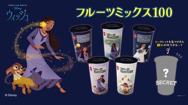 スジャータめいらくグループ(代表:日比治雄、所在地:愛知県名古屋市)は、ディズニー映画最新作『ウィッシュ』の公開を記念して、カップ飲料「フルーツミックス100」を発売します。カップのデザインは全部で6種類あり、うち1つはシークレットとなっております。
