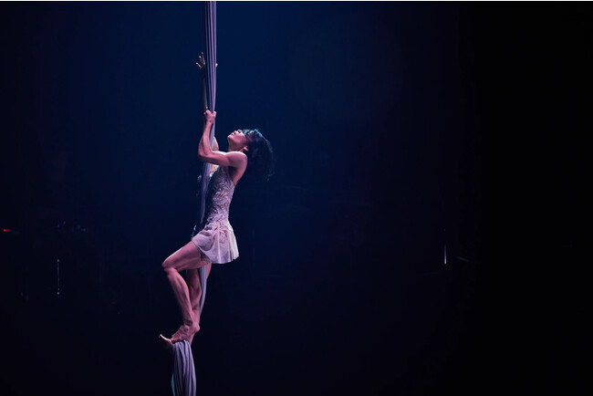 新体操出身のアーティスト。柔らかな身体能力を生かしたエアリアル・シルクの演技を武器に、ブロードウェイミュージカル『ピピン』日本語版等にも出演。本作品ではメインビジュアルも担当。夜明けの月を見上げ、希望を見出そうとする一人の女性(ヨア)を力強く演じる。