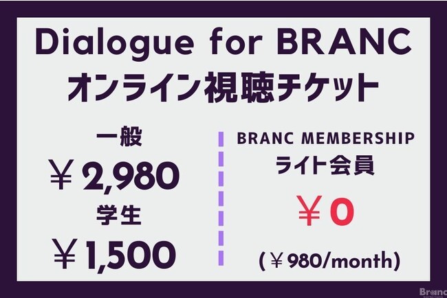 参加費:一般:2,980円(BRANC MEMBERSHIPライト会員は無料 ※1) 学生:1,500円(学生チケットはPeatixのみ対応)