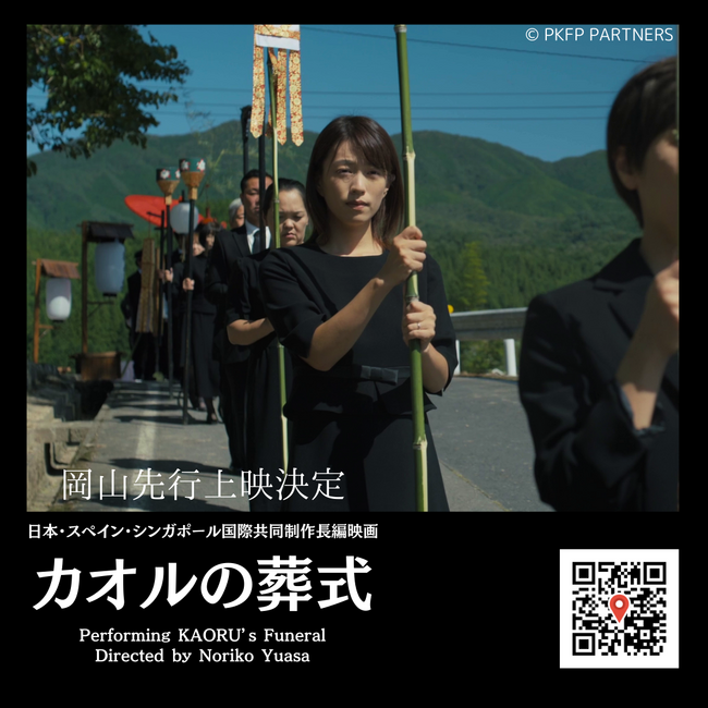 はるやま商事株式会社(本社:岡山県岡山市、代表取締役社長 中村 宏明)は、岡山出身の湯浅典子氏が監督・共同脚本・プロデューサーを担い、合同会社PKFP PARTNERSが製作した、日本・スペイン・シンガポール国際共同制作映画『カオルの葬式』の中で印象的なアイテムとして登場する礼服を衣装提供する事で制作を応援してきました。このたび、岡山県北・苫田郡鏡野町にある宝樹寺をメイン舞台にした本作が、世界公開に先駆け地元岡山で12月8日(金)に岡山メルパにて先行上映が開始されますのでお知らせします。