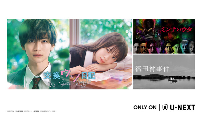 USEN-NEXT GROUPの株式会社U-NEXT(本社:東京都品川区、代表取締役社長:堤 天心)が運営する動画配信サービス「U-NEXT」は、原作小説が累計65万部を突破した青春ラブストーリー『交換ウソ日記』、清水崇監督の最新作『ミンナのウタ』、社会現象ともなった話題作、森達也監督『福田村事件』など、13作品を独占配信いたします。