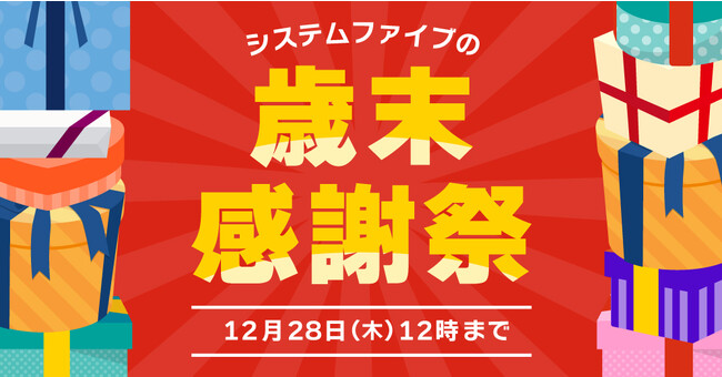 株式会社システムファイブ(本社:東京都千代田区、代表取締役社長:小川 行洋)は、2023年12月28日(木)12時まで、歳末感謝祭を開催します。