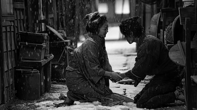 江戸時代末期、厳しい現実にくじけそうになりながらも心を通わせることを諦めない若者たちの姿を、墨絵のように美しいモノクロ映像で描き出す。武家育ちである22歳のおきく(黒木華)は、現在は寺子屋で子どもたちに読み書きを教えながら、父(佐藤浩市)と2人で貧乏長屋に暮らしていた。ある雨の日、彼女は厠のひさしの下で雨宿りをしていた紙屑拾いの中次(寛一郎)と下肥買いの矢亮(池松壮亮)と出会う。つらい人生を懸命に生きる3人は次第に心を通わせていくが、おきくはある悲惨な事件に巻き込まれ、喉を切られて声を失ってしまう・・・。