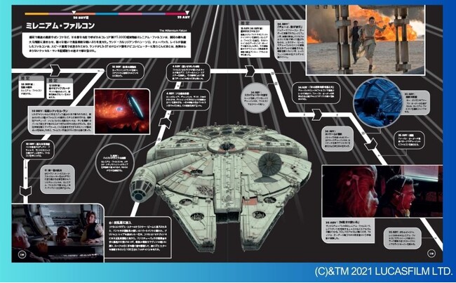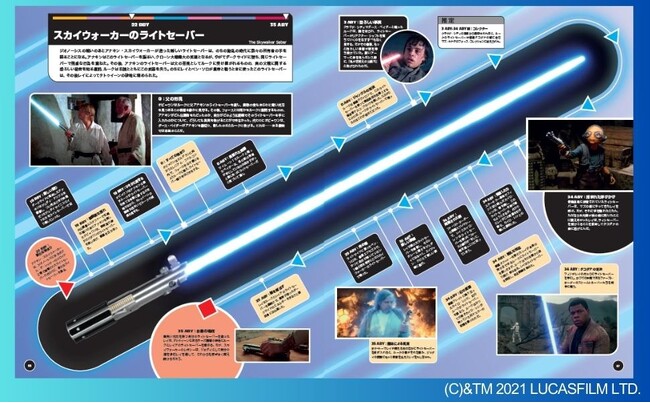 アナキン、オビ=ワン、ルーク、レイアなど、主要な登場人物たちの生涯もビジュアル年表で徹底解説。ライトセーバーやミレニアム・ファルコン、惑星ナブーなど、アイテムやビークル、惑星にまつわる小史も迫力のビジュアルで詳しく掲載しています。