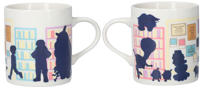あたたかい飲み物を注ぐと絵柄が変わる楽しいマグカップです。図書館が閉館すると現れるイマジナリたちを、常温時はシルエットで、あたためると浮かび上がるイラストはあたたかみとかわいさのある色合いで表現しました。