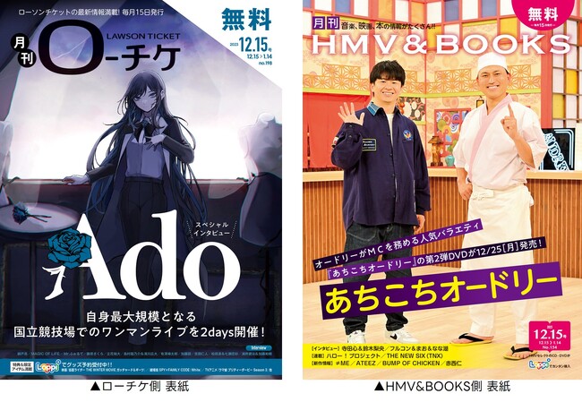 【本日発行】フリーペーパー『月刊ローチケ/月刊HMV&BOOKS』12月15日号の表紙・巻頭特集は「Ado」&「オードリー」
