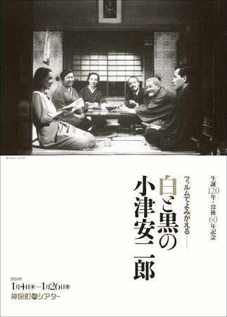2024年新年第1弾の特集上映となる1月4日(木) からは、小津監督の白黒作品だけを選んでフィルムで上映する、「フィルムでよみがえる──白と黒の小津安二郎」特集上映です。