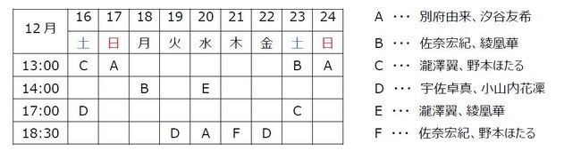 出演:綾凰華、宇佐卓真、小山内花凜、佐奈宏紀、汐谷友希、瀧澤翼(円神)、野本ほたる、別府由来(50音順)