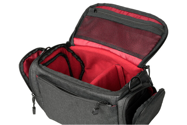 フラップが外側に開くので、機材の出し入れがスムーズ。