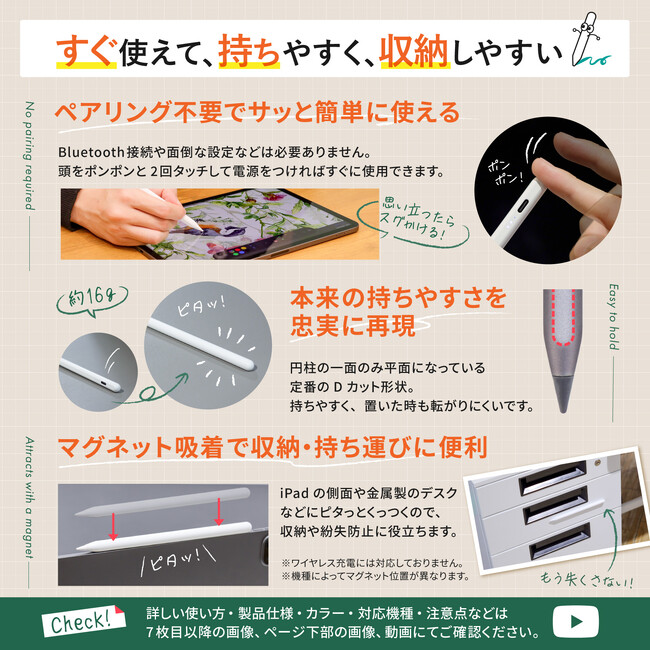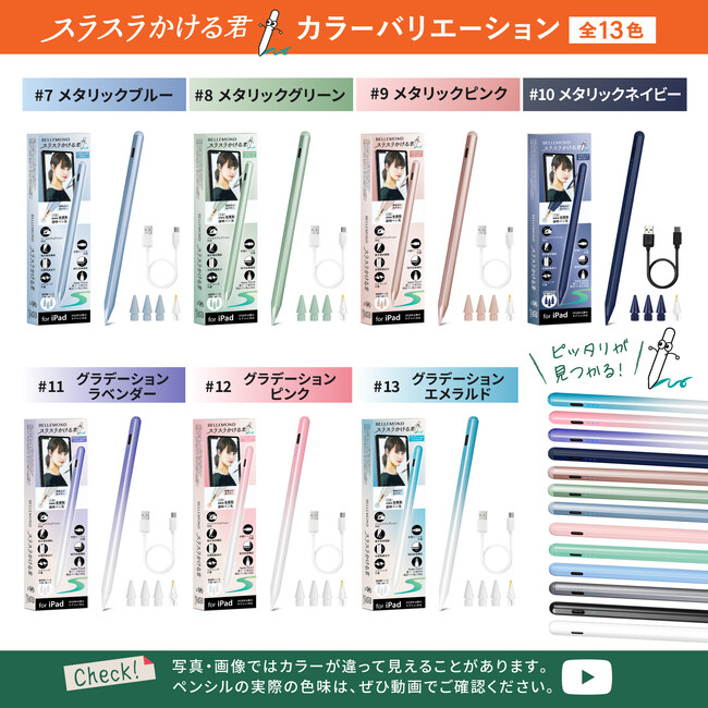 Fun Standard株式会社(本社:福岡県大野城市)が展開するモバイルアクセサリーブランド「BELLEMOND(ベルモンド)」より新商品のお知らせです。2023年12月、iPad専用スタイラスペン「スラスラかける君 グラデーションエメラルド」を発売しました。スラスラかける君はお手頃ながら「パームリジェクション」「傾き検知」「マグネット吸着」などの鉄板機能を搭載した全部入りのタッチペンです。アイパッドで絵を描くことに興味がある・アイパッドで手書きノートを書きたい・お子様のお絵かきにアイパッドを利用したい・デジタルイラスををこれから始めようと考えている初心者の方・サブペンシルを探している方など、様々な方にご活用いただきたいスタイラスペンとなっています。鉄板機能に加え、替え芯を4個付属。ペンシル本体と同じカラーの樹脂製(POM)を3個、透明で接地点が見やすくシャーペンのような硬質な書き心地が特徴の極細金属製ペン先が1個、金属製ペン先も試せるお得なセットとなっています。替え芯はApplePencil第一世代、第二世代の両方に互換性があるので、ApplePencilにもご活用ください。