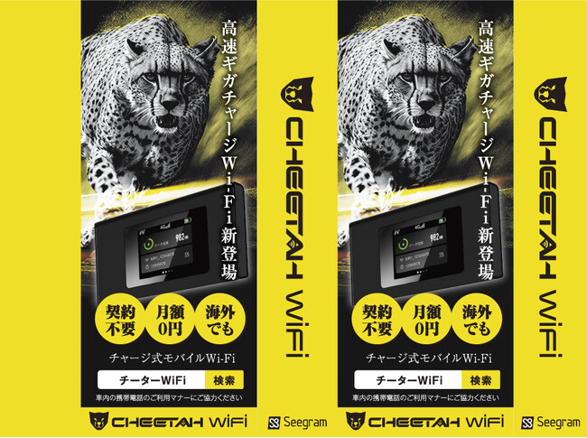株式会社Seegram(本社:大阪市淀川区、代表取締役:山下浩司、以下Seegram)は、「CHEETAH WiFi」の吊手(つり革)広告を、都営線4車両(浅草線1車両・三田線1車両・大江戸線2車両)で掲出いたします。
