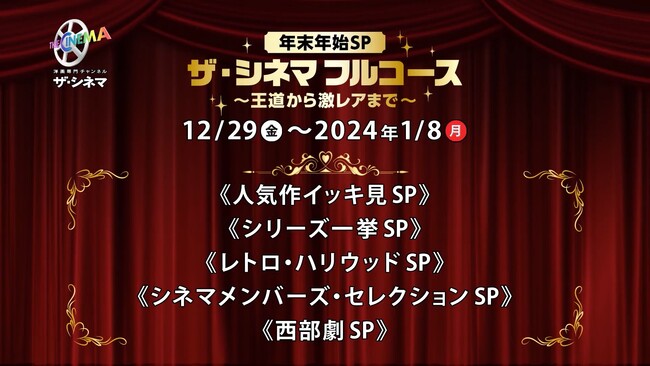 今年もご愛顧いただき誠にありがとうございます!12/29(金)〜1/8(祝・月)12日間は年末年始SP ザ・シネマ フルコース 〜王道から激レアまで〜