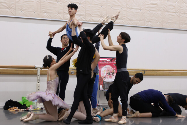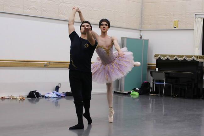 続く『海賊』はコーダということもあってがらりと雰囲気を変え、ダンサー2人が次々に大技を披露。高さのあるジャンプや華麗なピルエットで魅せて拍手をさらったかと思うと、ユーモラスな表情を作って笑わせる。稽古でありながら多くの笑い声と歓声があがり、本番さながらの熱気と笑顔溢れる空間が生まれていた。