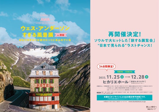 11月25日(土)からヒカリエホール(渋谷ヒカリエ9F)にて開催されている展覧会 『ウェス・アンダーソンすぎる風景展 in 渋谷 あなたのまわりは旅のヒントにあふれている』が、いよいよ12月28日(木)で会期終了となります。