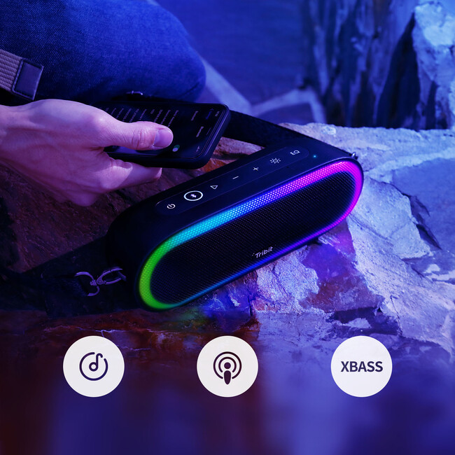 Tribitは、独自の低域ブースト技術「XBassモード」を搭載しています。「XBass」ボタンを押すすだけで、サイズを超えた臨場感あふれる迫力のサウンドと深みのある圧倒的な重低音をお楽しみいただけます。