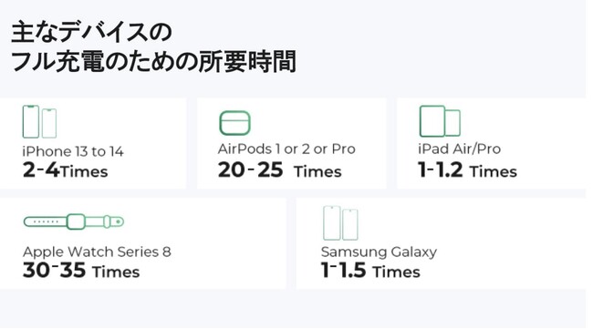 持ち運びも簡単で、いつでも、どこでも、必要な時にすぐに充電いただけます。が可能です。