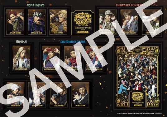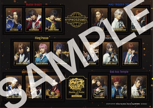 さらに、「ステッカーシート」「3面パノラマカード」と併せて、舞台公演時に入場特典として配布していた「ラバーバンド3個セット」(組み合わせは全4種)をランダム配布いたします!(1:“Buster Bros!!!”、“North Bastard”、“D.D.B” 2:“MAD TRIGGER CREW”、“鬼瓦ボンバーズ”、“D4” 3:“Fling Posse”、“Bad Ass Temple”、“道頓堀ダイバーズ”4:“麻天狼”、“どついたれ本舗”、“糸の会”)