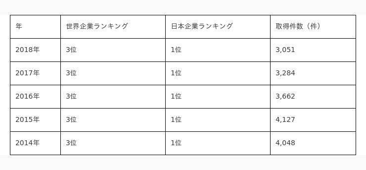 米国特許取得企業ランキングで世界第5位・日本第1位 38年連続で世界5位以内を維持