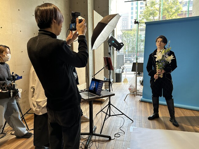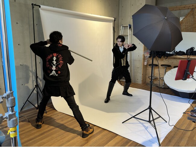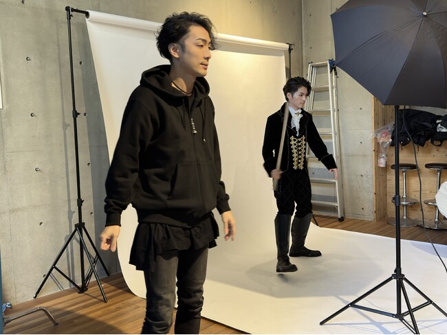 撮影スタート。今回のビジュアル撮影ではメインキービジュアルショットとキャラクター紹介のWEBビジュアルショットのほか、公演のパンフレット、広報やグッズに利用するショットも撮影、と盛りだくさんだ。