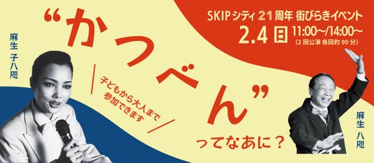SKIPシティ(埼玉県川口市)は今年2月にオープン21周年を迎えます。これを記念して彩の国ビジュアルプラザ映像ホールで“かつべん”ってなあに?を開催し、埼玉県在住の活動写真弁士である麻生八咫(あそう・やた)氏、麻生子八咫(あそう・こやた)氏をお迎えします。