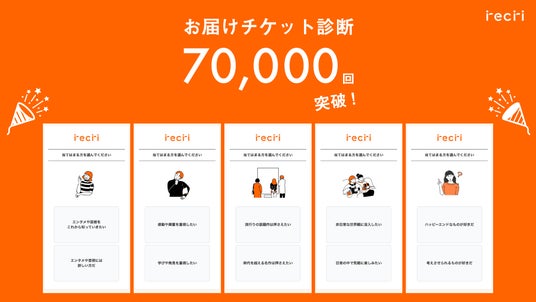 【チケットのサブスクrecri】お届けチケット診断の体験回数が7万回を突破!